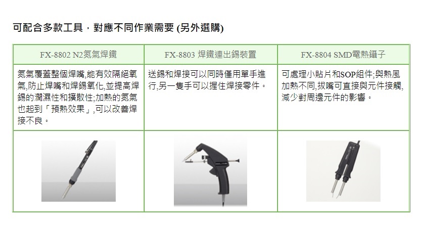 採用焊嘴與發熱元件分離式設計,節省運營成本,備有超過30款焊嘴可供選擇。