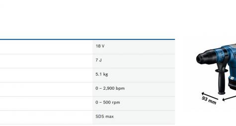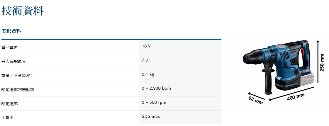 極其精巧 – 比市場上任何其他充電式SDS max五溝鎚鑽更加精巧 輕質設計搭載最大功率 – BITURBO Brushless 無刷五溝鎚鑽配備ProCORE18V電池,重量僅6.1公斤,但最高效能可達7.0 J 高度智慧 – 配備便利的使用者介面和 藍牙連結功能,再與緩啟動和鎖定按鈕相結合,可持久進行鑿削作業