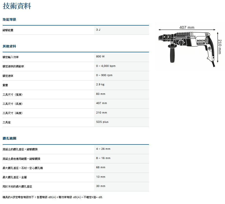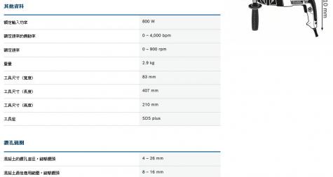 2公斤電鎚等級中的優良鑽孔率 在SDS plus和快速更換夾頭之間無需工具的快速更換 鑿削用旋轉止動