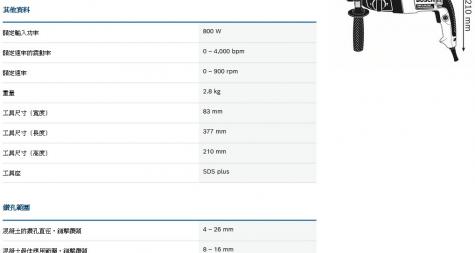 2公斤電鎚等級中的優良鑽孔率