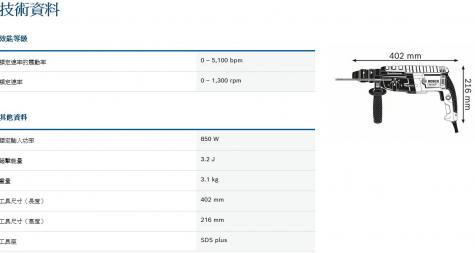 高速率鑽孔與同級產品中最高的鑿削性能 相較於同級產品中其他鎚鑽,使用壽命可延長25%,工作效率更高 採用主動式減震系統,震動比上一代機型減少27%