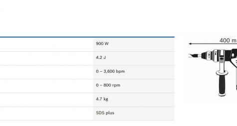 可滿足各種應用需求,包括鑿削和鑽孔作業,以及空心鑽孔機之應用 相較於同級產品,鑽孔速度快30%(25 mm直徑) 具備博世Vibration Control功能,僅產生12 m/s²的極低震動值,因此作業時不易疲勞