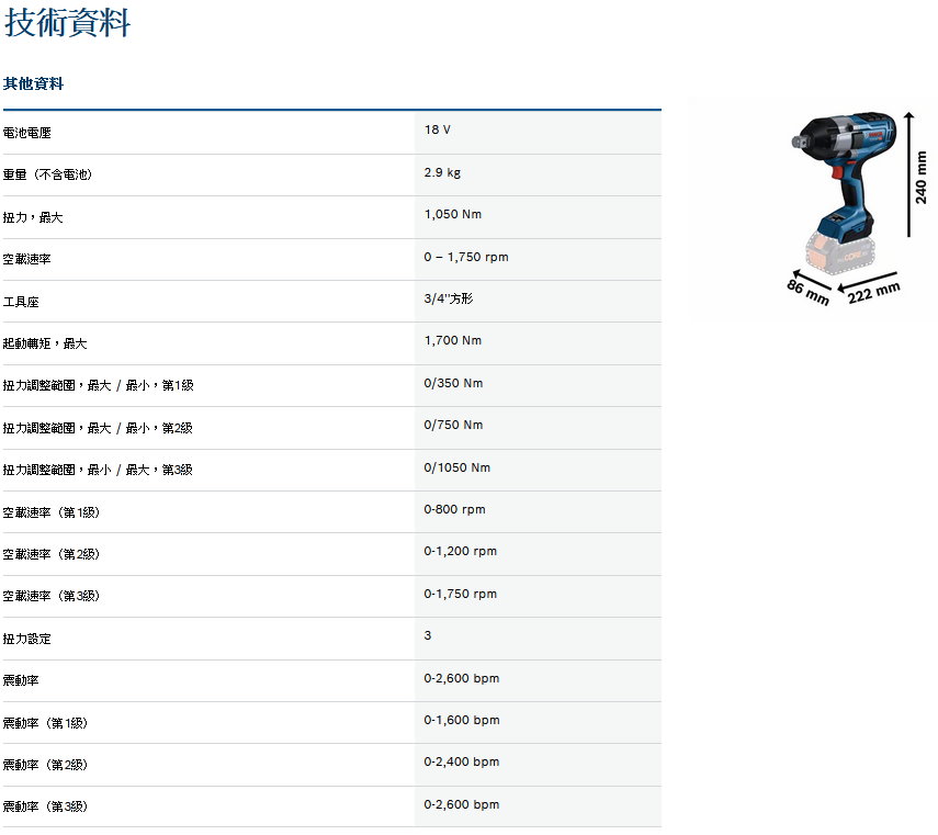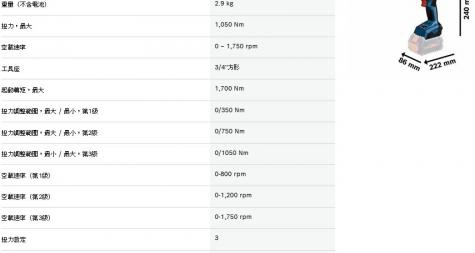 最佳功率:採用BITURBO Brushless技術的3/4"高扭力衝擊扳手機 ProCORE18V電池和無刷馬達展現無與倫比的強大動力 高效能馬達,鎖緊扭力為1,050 Nm,卸除扭力可高達1,700 Nm 具有三段轉速 / 扭力設定,提供豐富的多功能性和可控制的功率