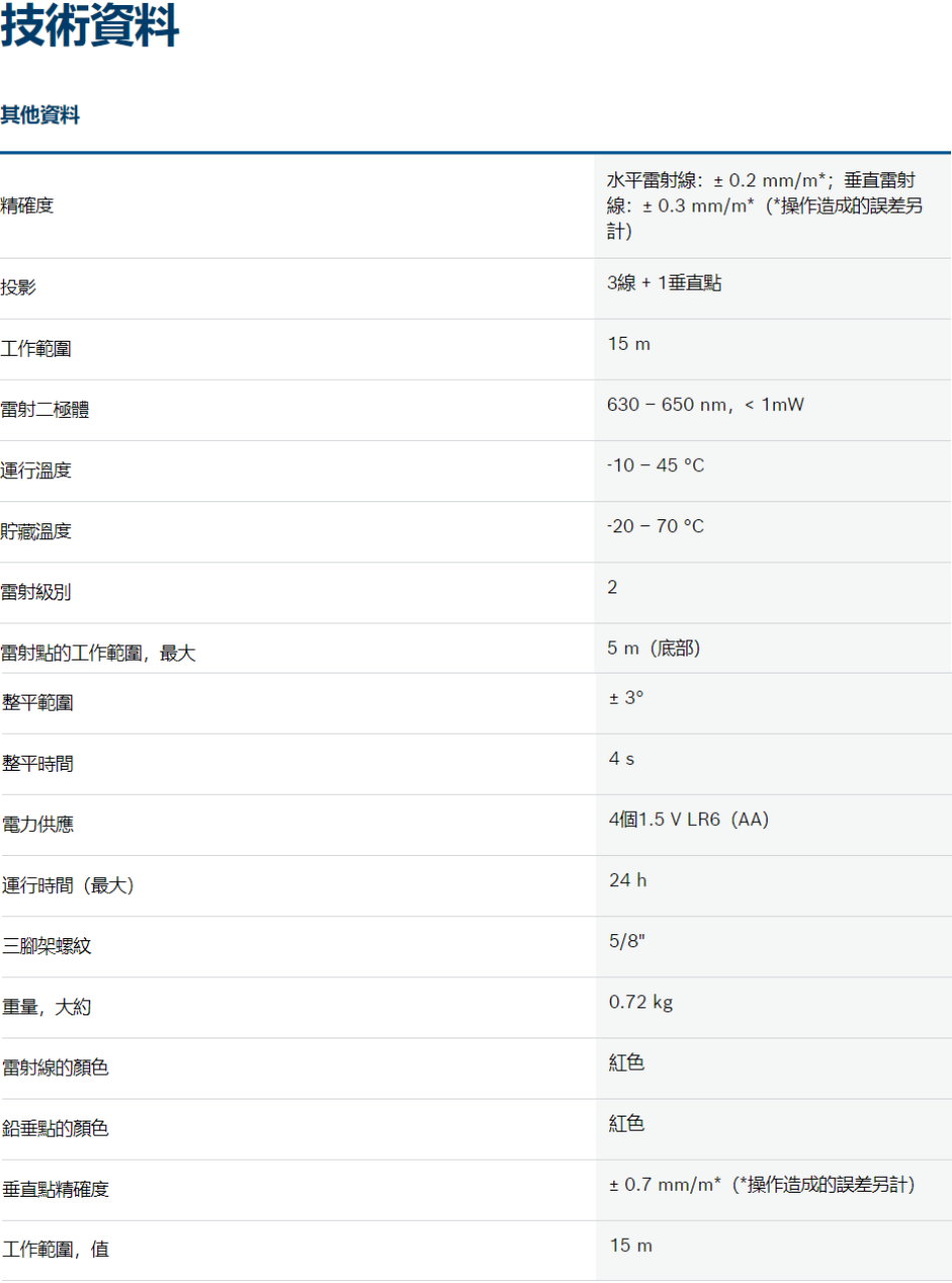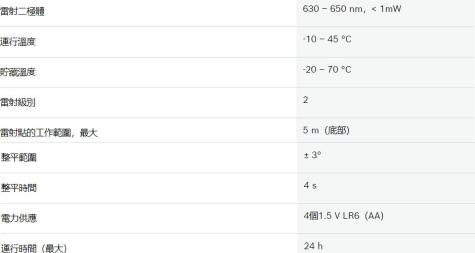 增強2倍的雷射光束讓每天的室內校平作業效率更提升 更佳的能見度 - 增強2倍的前方十字雷射光束提供最佳的工作表現 投射垂直和水平雷射光束 可拆卸的360°旋轉平台,含氣泡水平尺及微調功能
