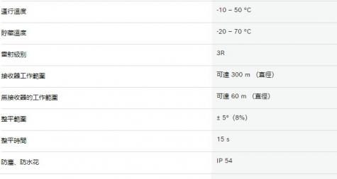 垂直與水平自動整平,操作簡易 單鍵單一功能與自我解讀顯示,操作更簡單 自動8% (± 5°)整平功能,更易於設定水平與垂直模式 可開關的震動警告功能,在撞擊或震動的情況下可以避免整平失誤。