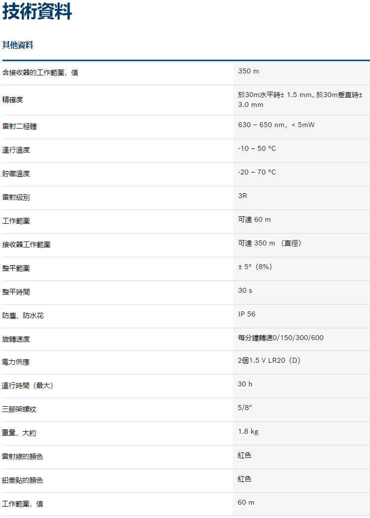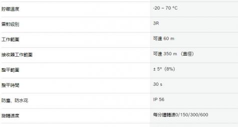 具備手動雙斜度功能的旋轉式雷射水平儀,適合水平及垂直的應用 多功能 - 水平及垂直手動雙斜度功能,在兩軸應用下可以變更傾斜率 靈活 - 可選擇多種速度和掃描角度,在不同的照明條件下都能提供絕佳的效果 堅固 - 符合IP 56防塵防水標準,適合各種嚴峻的工地環境,震動警告功能會警示因震動造成的錯誤