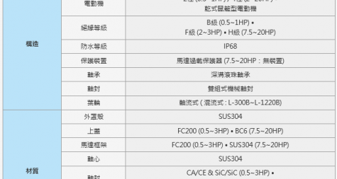 ● 泵浦結構堅實,乾式馬達,雙組式機械軸封,防水佳,葉輪導流裝置,水流順暢,可長期運轉使用,泵浦防水等級符合IP68。