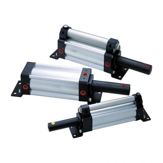 作動原理:利用氣壓源轉換成高能量之油壓出力。 應用在對加工物之壓入、烙印、成型、沖孔、鉚合、剪斷、矯直、壓花、熔接、測試等功能。 具有油壓高出力之特性,且不產生高溫及噪音之缺點,比油壓系統更經濟又安全及高效率。