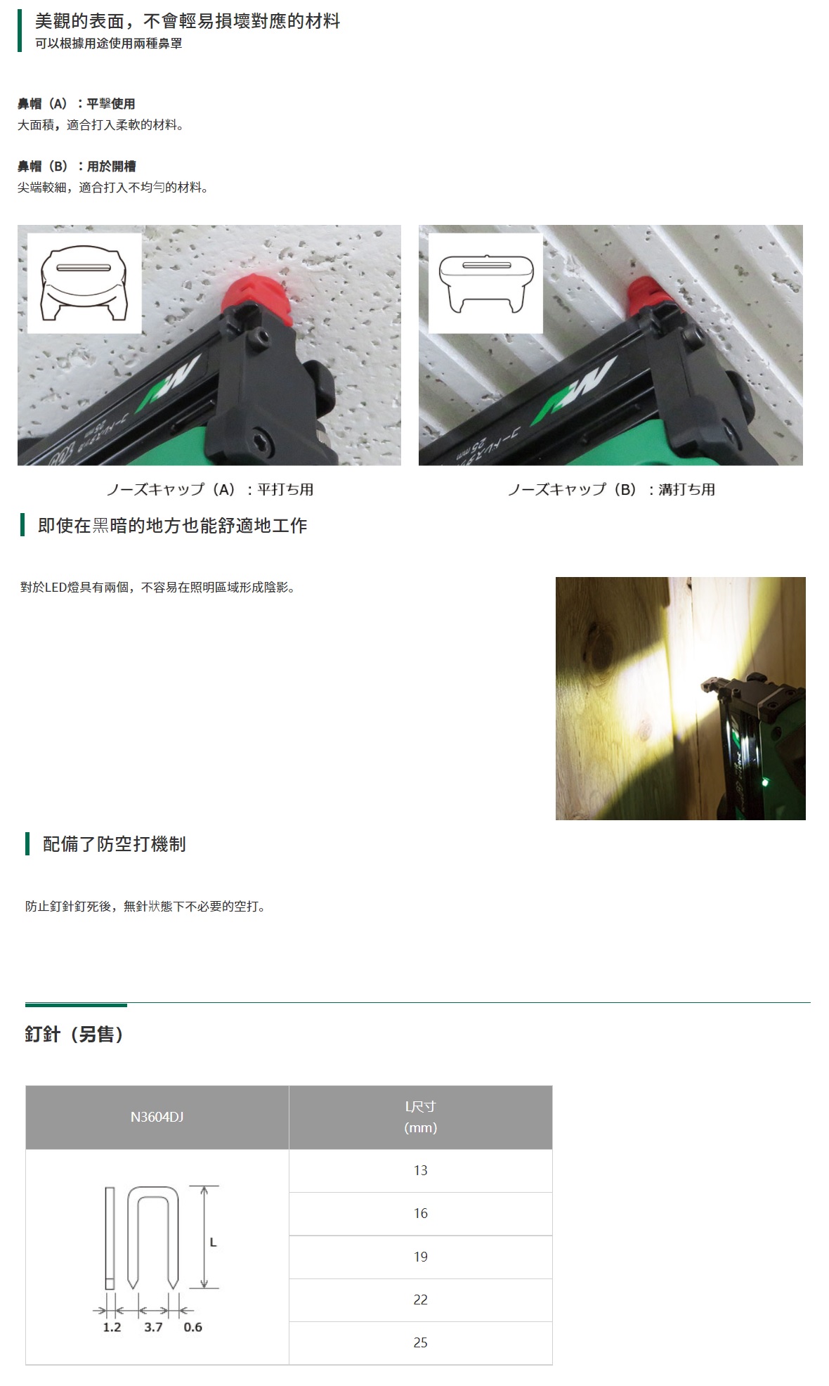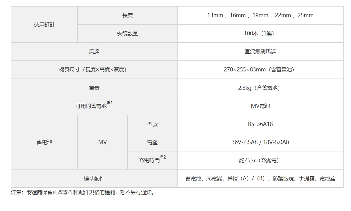 MV(36V)無刷釘槍機(ㄇ型釘) 釘針寬度4mm N3604DJ