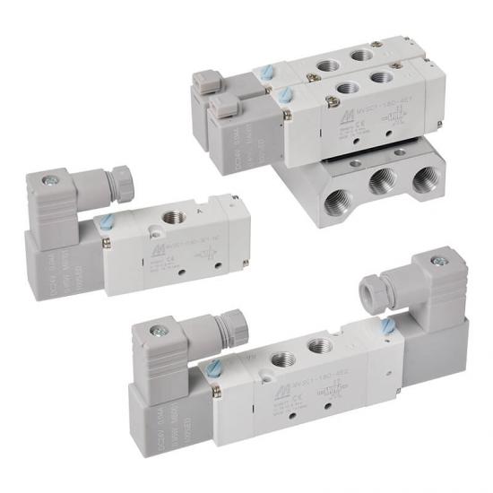 本體寬幅 18mm,3口2位,5口2位,5口3位,配管口徑尺寸 Rc1/8,直配管型,最大使用壓力 0.8 MPa,流量 490~817 l/min。