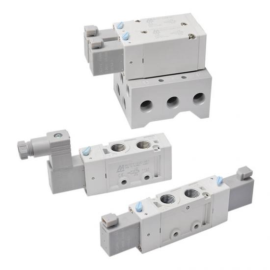 本體寬幅 22mm,3口2位,5口2位,5口3位,配管口徑尺寸 Rc1/8, 1/4,直配管型 / 連座型,最大使用壓力 0.8 MPa,流量 871~980 l/min。
