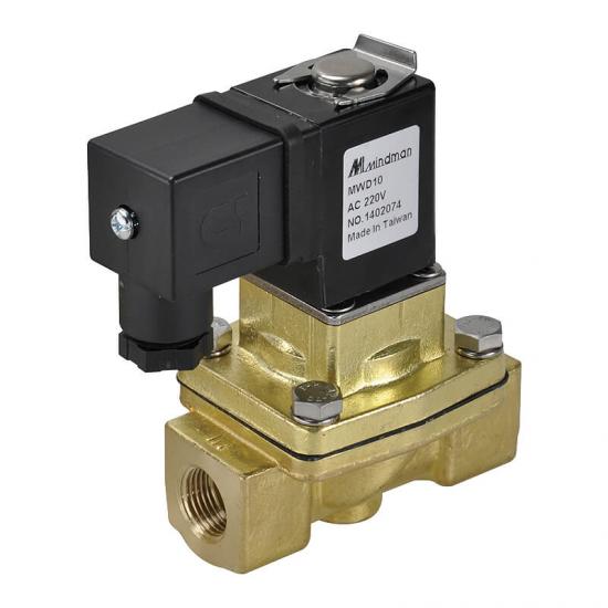 2口2位先導膜片式電磁閥(常閉型), 配管口徑:3/8"~2" ,低差壓,鍛造銅閥體,適用流體:水、空氣、瓦斯。