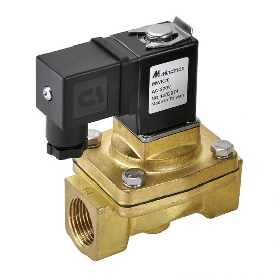 2口2位先導膜片式電磁閥 (常閉型),配管口徑:3/8"~ 2",零差壓,鍛造銅閥體,適用流體:真空、水、空氣、輕油、瓦斯。