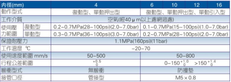 7、缸徑小,反應快,可適用於較高頻率的工作環境。