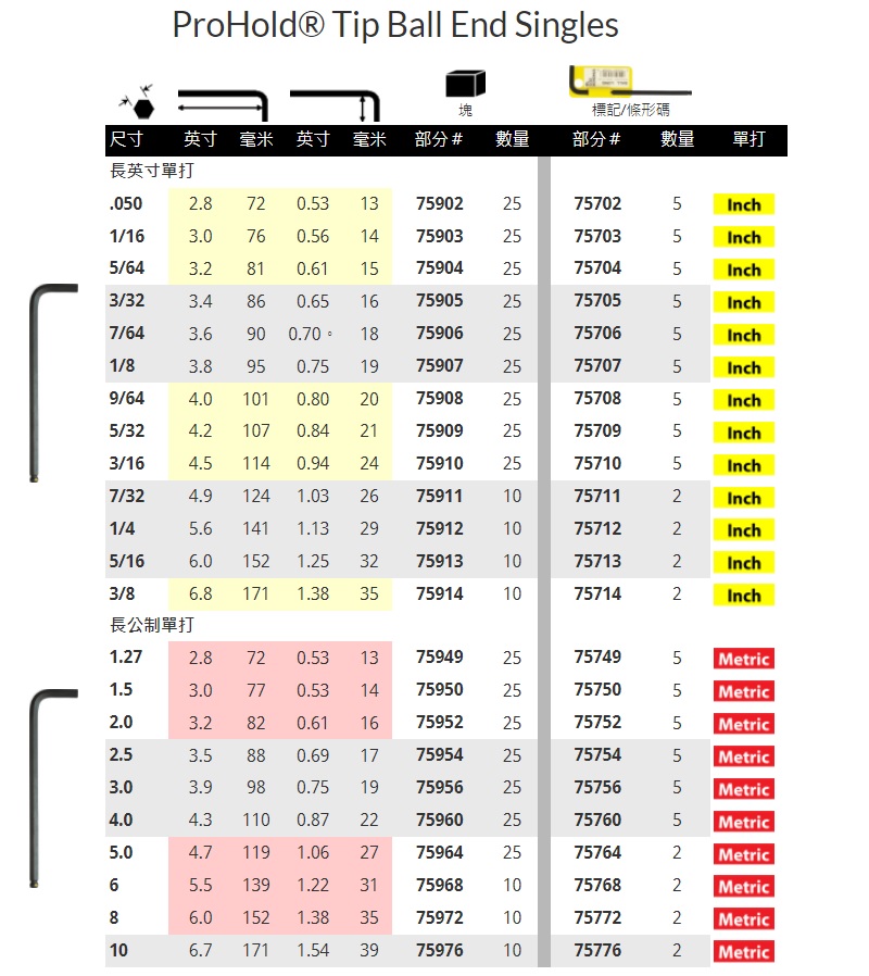 ProHold® 尖端球頭 L 型扳手 - ProGuard™ 表面處理