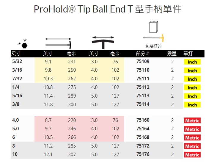 ProHold® Tip Ball End T 型手柄 - ProGuard™ Finish