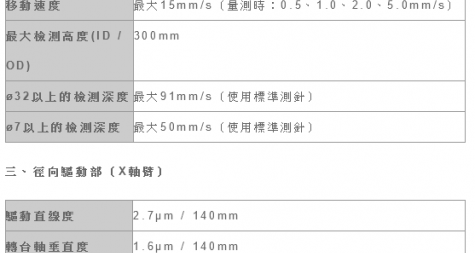簡潔的形式,可量測各式工件,實現廣範圍量測:最大測針直徑:280mm、Z軸(立柱)行程:300mm、最大承重量:35,徑向:最大30mm/s。