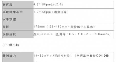 高精度旋轉台(徑向精度:0.02+3.5H/10000μm,軸向精度:0.02+3.5X/10000μm)可完成真圓度、圓柱度以外的平面度等量測功能。