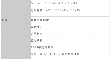 HH-411量測單位結果為HL(L硬度規範為ASTM A956),根據需求可以換算顯示Vickers(維克式), Brinell(勃式), Rockwell C(洛式C,HRC), Rockwell B(洛式B,HRB), Shore(蕭式), tensile strength(拉伸強度)。