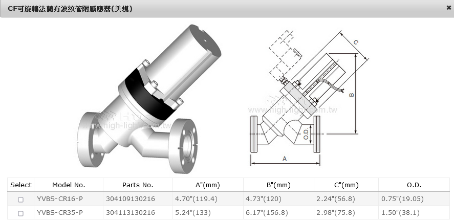 CF可旋轉法蘭有波紋管附感應器(美規)