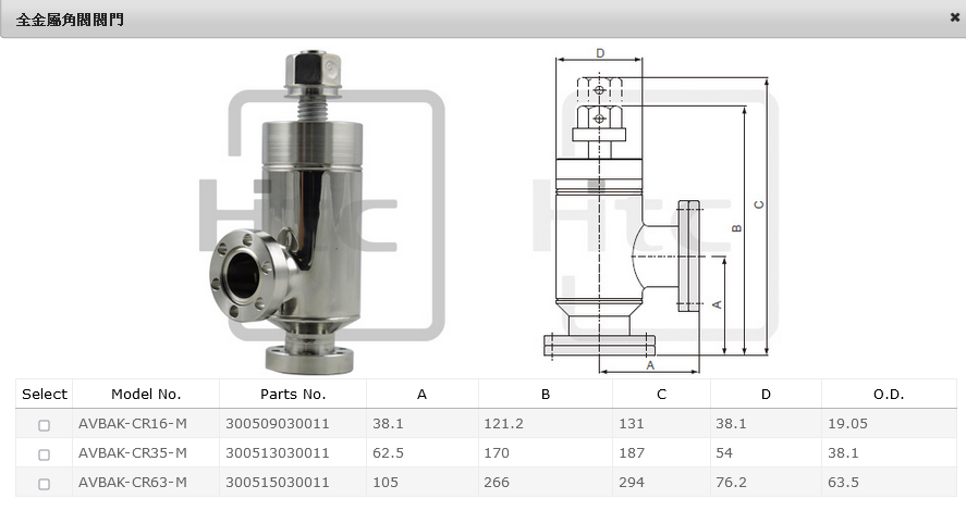 全金屬閥門(Bakeable All-Metal Valve)是屬提升錐閥的一種。當提升錐被頂至頂端時, 閥門內部的結構腔是開放系統且氣體流動不受阻礙。一旦提升錐被移動至閥門底部時,銅墊片之密封墊被壓縮密封閥門,而阻絕氣體的流通達到密封之效果。Htc日揚真空提供之全金屬閥門設計適用于超高真空的環境下,其封止用的墊片是可耐大溫差之金屬墊片。Htc日揚真空設計所有系列全金屬閥門適用於真空排氣系統、高真空應用的抽氣系統、半導體技術與研究系統等。