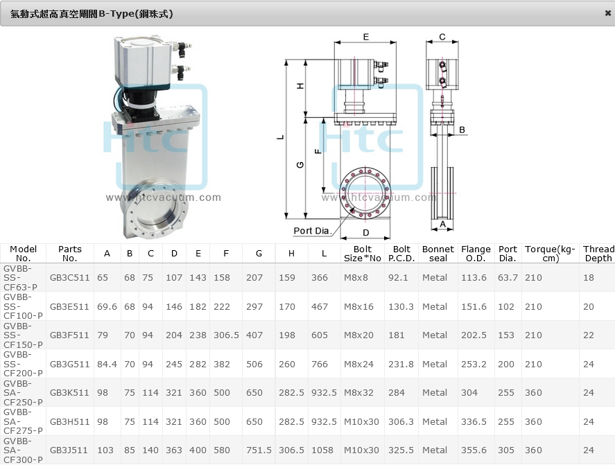 氣動式超高真空閘閥B-Type(鋼珠式)