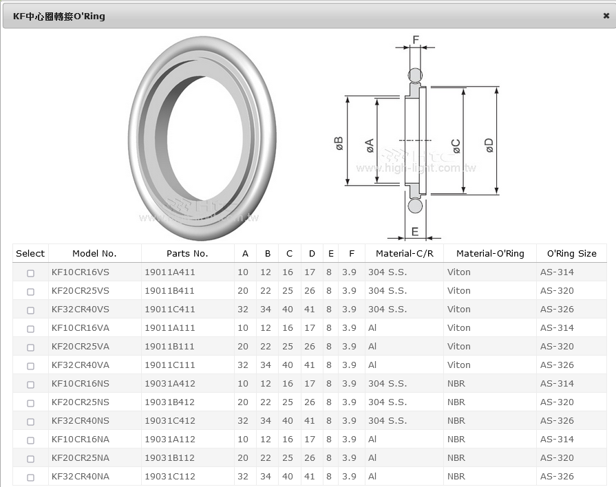 中心圈: 不鏽鋼304 S.S.或 鋁 Aluminum(可依客戶要求提供其它材質)