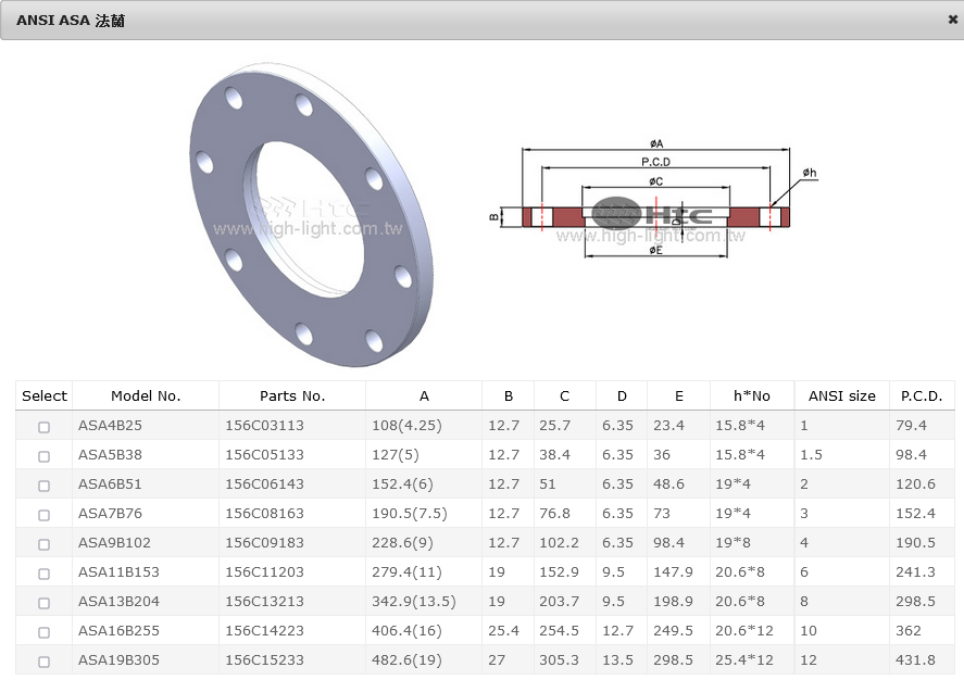 ANSI ASA 真空法蘭系列提供盲板法蘭或有O型環槽法蘭, 材質為304不鏽鋼. ANSI ASA 真空法蘭提供齊全管件配件尺寸從 1” 到 12” .