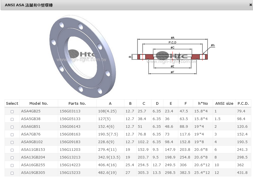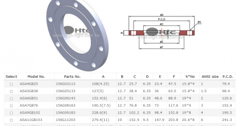 ANSI ASA 真空法蘭系列提供盲板法蘭或有O型環槽法蘭, 材質為304不鏽鋼. ANSI ASA 真空法蘭提供齊全管件配件尺寸從 1” 到 12” .