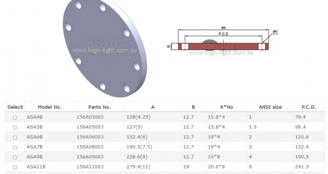 ANSI ASA 真空法蘭系列提供盲板法蘭或有O型環槽法蘭, 材質為304不鏽鋼. ANSI ASA 真空法蘭提供齊全管件配件尺寸從 1” 到 12” .