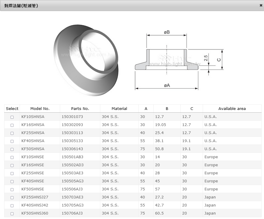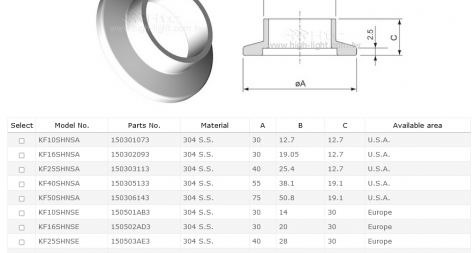 真空KF法蘭適用於通過真空製程配管與高真空腔體接續。也適用於焊接在真空幫浦管線配管中的不銹鋼管或不銹鋼軟管。