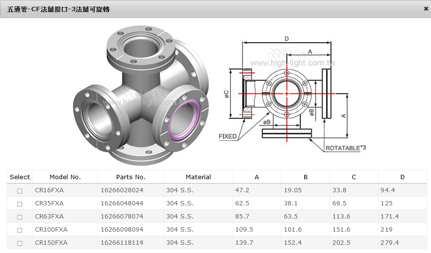 連接法蘭端口: 可依客戶要求提供CF、ISO、KF法蘭