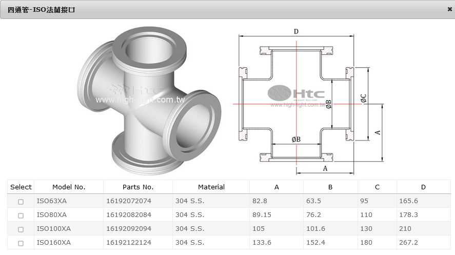 適用於半導體製程設備管線配線、大型管路以及PUMP排氣線路之真空四通管 Crosses管線
