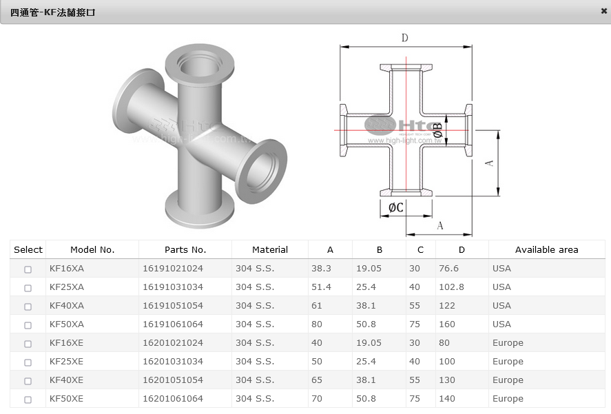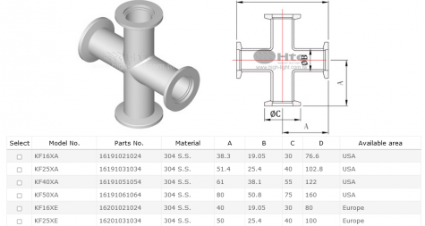 適用於半導體製程設備管線配線、大型管路以及PUMP排氣線路之真空四通管 Crosses管線