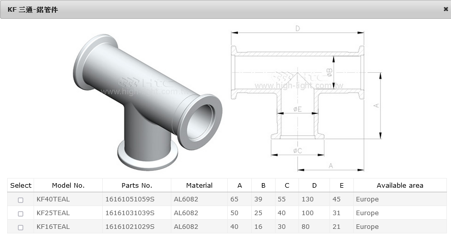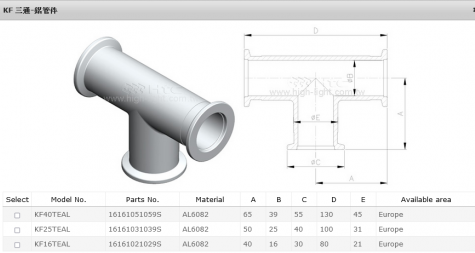 Htc日揚真空的KF鋁管件是標準真空零組件應用於真空產業設備系統。 高品質真空零組件設計並測試其洩漏率小於1×10-9 mbar l/s. Htc日揚真空製造KF鋁管件提供真空系統使用的管件-三通和彎頭。