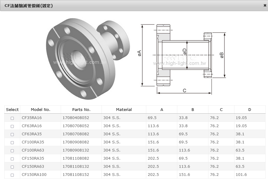CF法蘭縮減管接頭(固定)