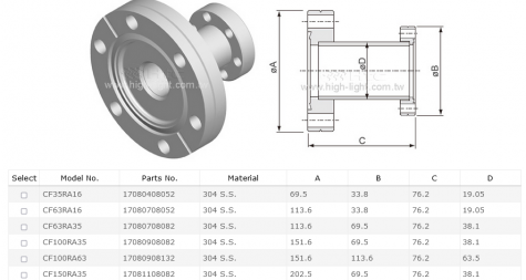 KF→ KF法蘭, ISO→KF法蘭, ISO→ISO法蘭,KF→ CF法蘭