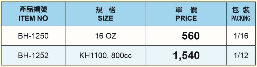 ★ BH-1250 可使用 14oz 牛油條或填充牛油