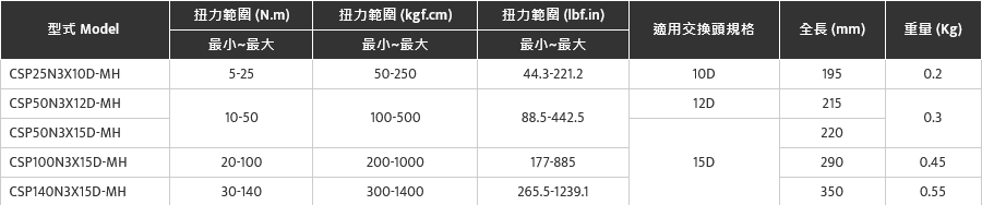 CSP-MH頭部交換式單能型扭力扳手(鐵柄)