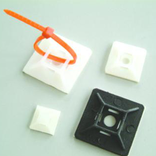 撕掉底面膠紙,固定于基板上,再以紮線帶穿于孔中綁住電線或電纜。
