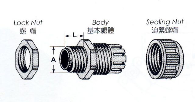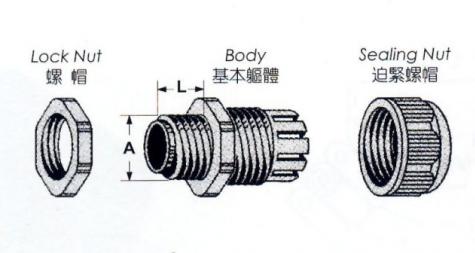 2.將浪管插入夾緊爪中,再以迫緊螺帽正向旋轉迫緊。