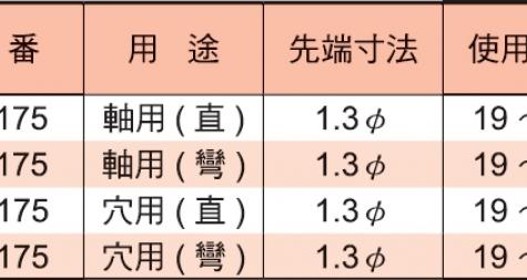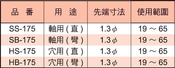 ♦尺寸從最小125mm至最大300mm,每種尺寸都有軸用、穴用、直式與彎式。