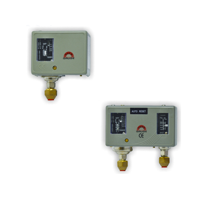 機械式壓力開關,適用於空氣、水壓、油壓、蒸汽、冷凍...等。當壓力變化時可當作電氣迴路開閉之用,並可避免接點開關頻繁而損壞設備。