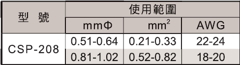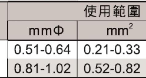 ♦AWG22~24亦可適用於絕緣電線外徑1.0mm~2.0mm。