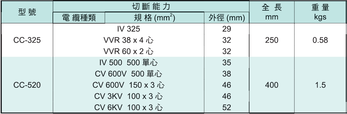 ♦Made in Japan 手動式 體積小、簡便、可放入口袋。 ♦有切斷中途可打開刀口裝置。,附膠套及停止導桿的安全把手。 ♦上下刀刃採用特殊合金鋼製成,耐久性佳,銷售30年,為CACTUS最佳口碑商品。 ♦享有專利,仿冒必究。 ※CV,ACSR鐵線,硬銅線等請勿使用。