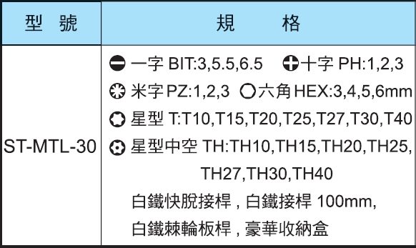 ST-MTL-30 不銹鋼BIT&棘輪板桿30件組