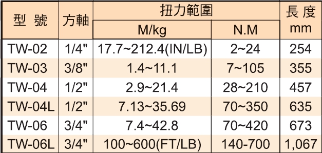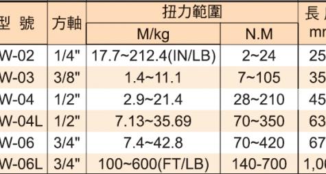 ♦可依需求選擇FT/LB或N.M.CMKG請參考扭力換算對照表