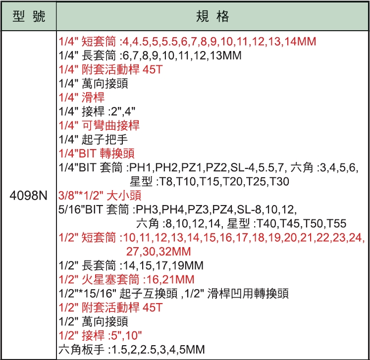 ♦件數眾多,尺寸齊全,最受汽修業界歡迎的組合。