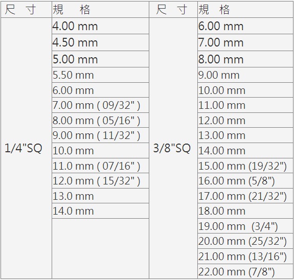1/4"SQ、3/8"SQ 單只套筒(Standard)