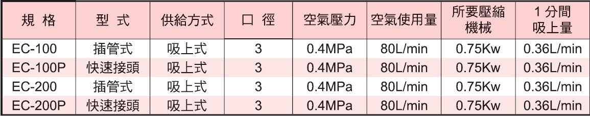 ♦EC-200旋轉鈕上的圓頭,可控制洗淨油的開關,豎立起來打開,往下為關閉洗淨油的流出。